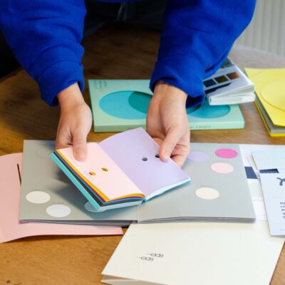 Of course, you and the couple are warmly welcome at our printing house, where you can view and select samples of paper and examples. In the background, you’ll hear the Heidelberg printing presses that will later print the cards. If you prefer to receive paper samples by mail or want to see everything live via a video call, that’s also possible.